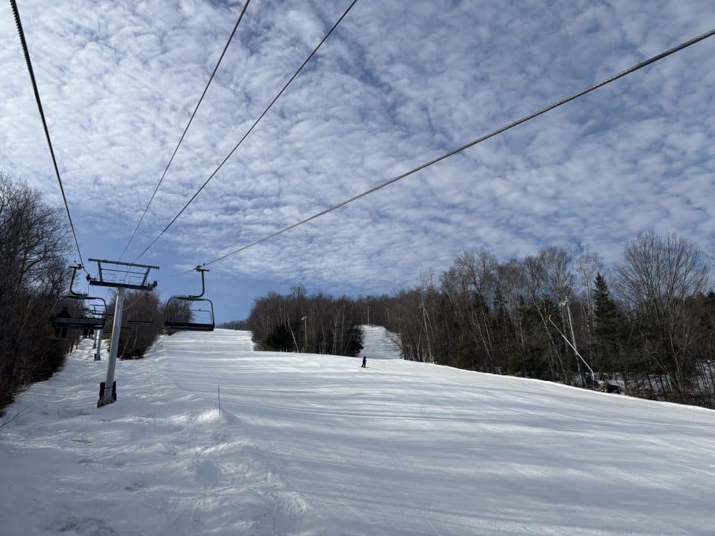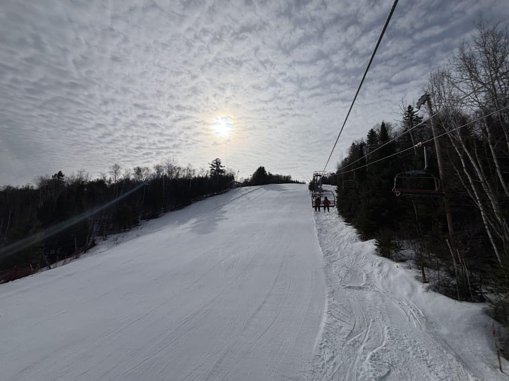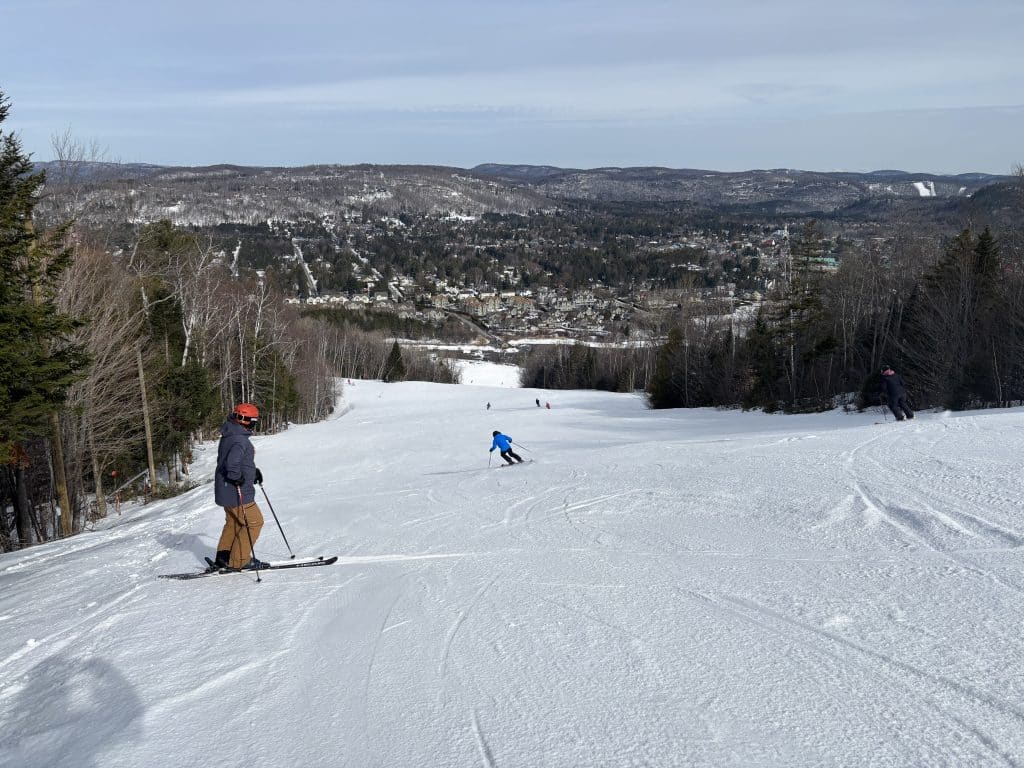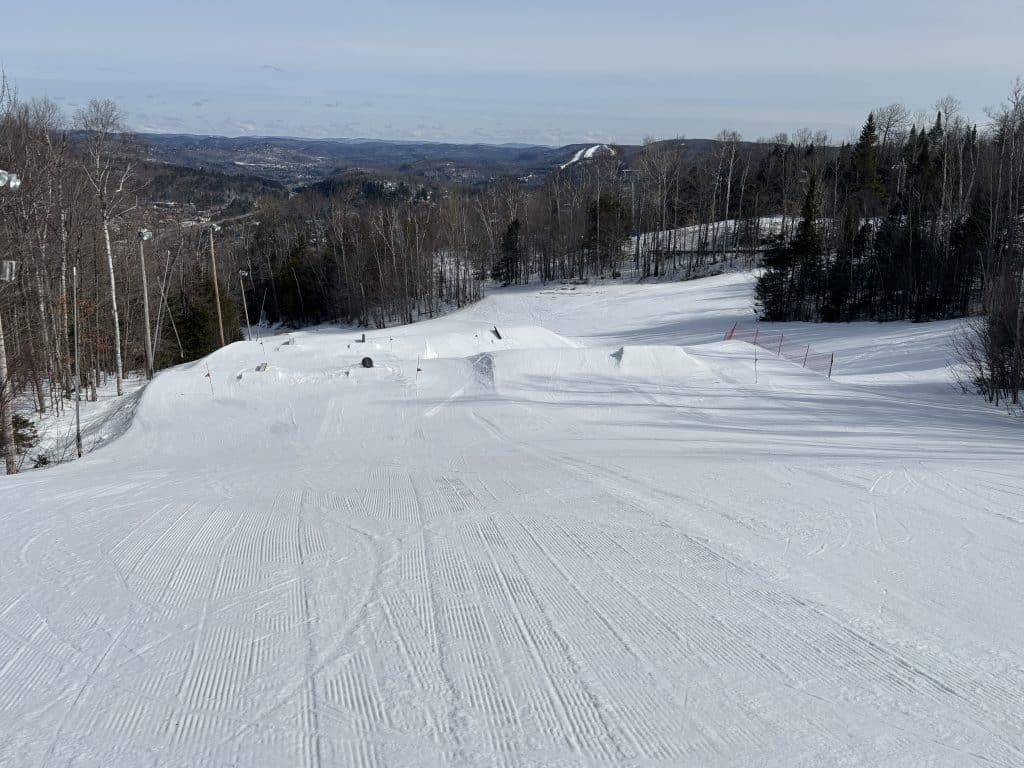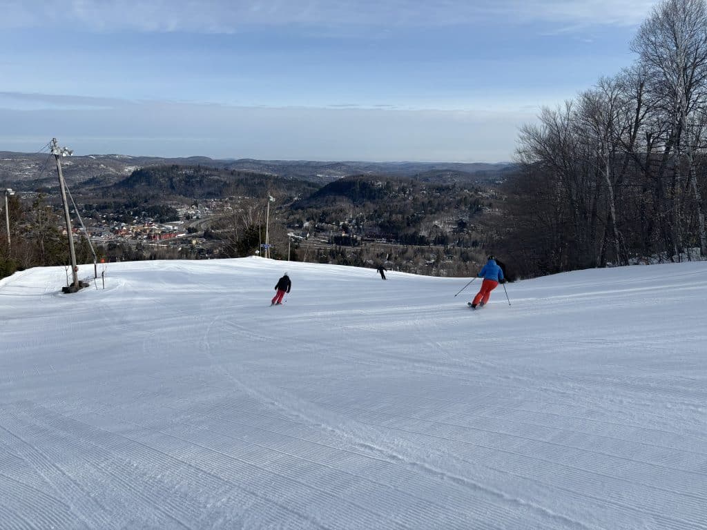 Dame nature joue au yo-yo depuis quelques jours et j’avais bien hâte d’être de retour sur les pistes pour taquiner la poudre blanche. Ce matin au sommet Saint-Sauveur. 18 pistes étaient sur le menu. Un soleil resplendissant était au rendez-vous. Il est à noter que le versant Avila était fermé.