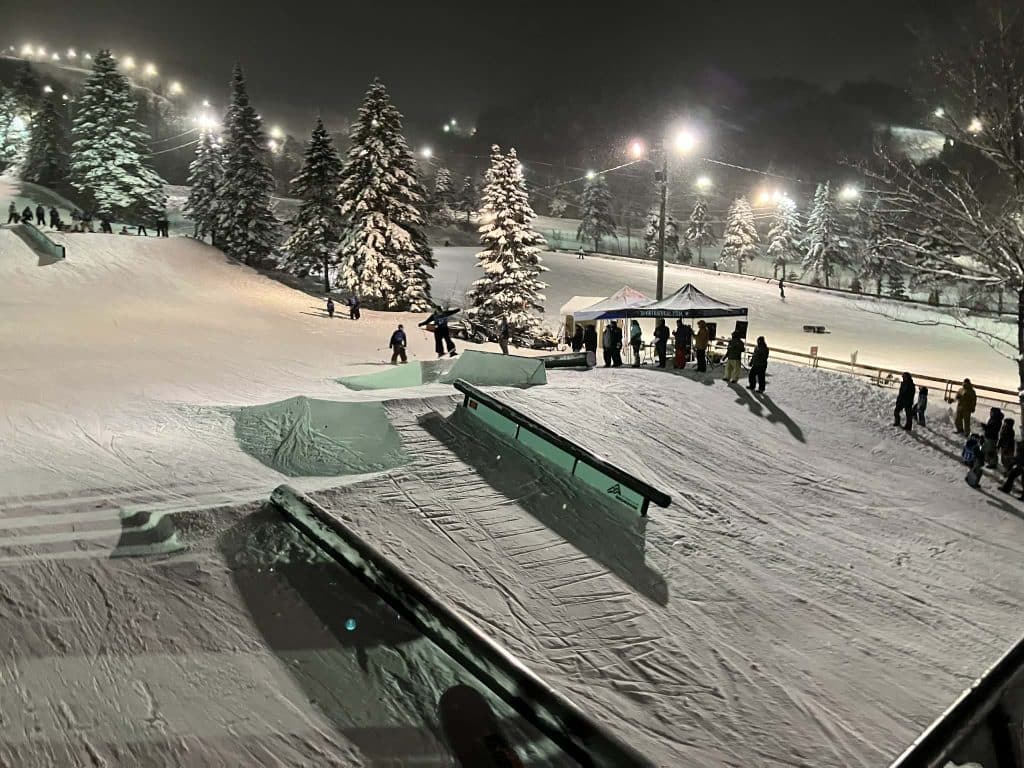 Ce soir, l’esprit de compétition est à l’honneur. La station présente le « Rail Jam« . Un événement amical ou les adeptes de parc, autant skieurs que planchiste peuvent exposer leurs talents et tester des figures. Une équipe d’animation est sur place, la musique est entrainante, l’animateur est rigolo et une petite foule se déplace pour admirer les manoeuvres. Le tout se conclut par une remise de prix, présentée par une boutique bien connue dans la région, Sport Radical.