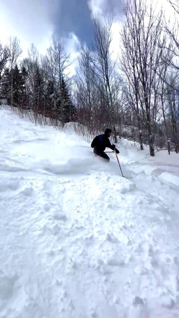 Dans ma piste préférée pour experts, la Nadler’s needle (la 0) qu’on retrouve à l’extrémité gauche de la montagne. On voit ici la poudreuse très profonde.