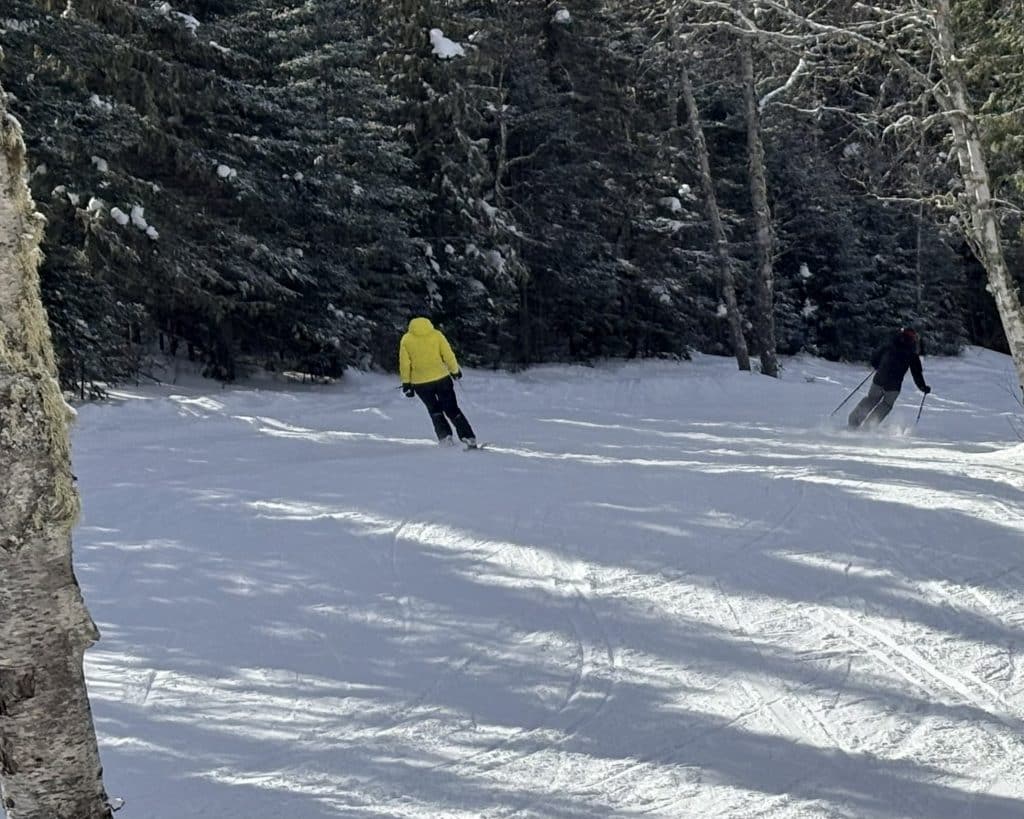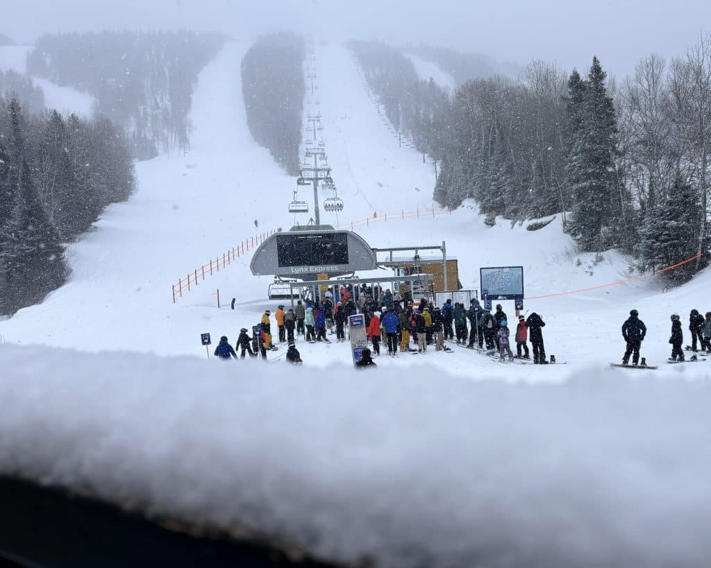 Tout a débuté à l’arrivée. Tu avais bien gardé ta couverture ce matin. Nuageuse et duveteuse, tu m’offrais des descentes confortables, comme si tu voulais me dire : « Relax, champion, on commence doucement. » Il faut dire que ta nouvelle remontée aide pas mal… J’ai pu t’arpenter au complet en à peine une heure! J’ai vu des files d’épicerie qui prenaient plus de temps.