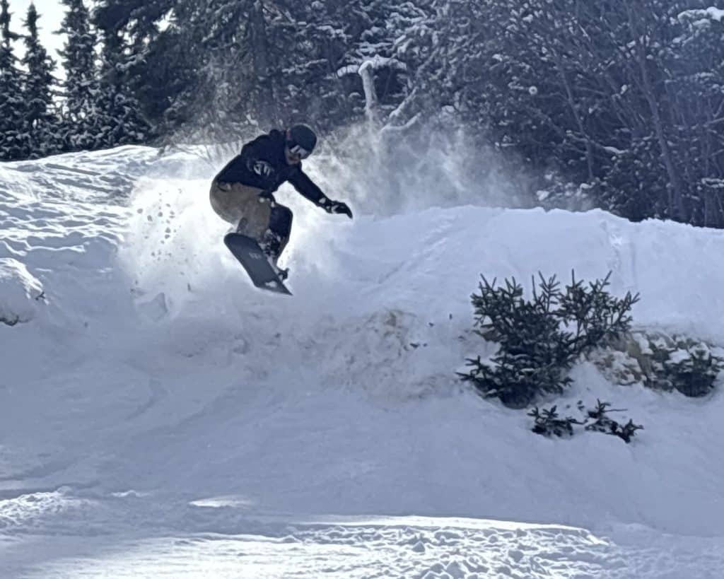 Mes carres, pourtant bien affûtées, ne servent qu’à l’occasion. La mollesse de l’or blanc rend tout fluide, immaculé. On enchaîne les descentes à un rythme soutenu. Sous-bois, bosses, pistes : tout est impeccable. Le plaisir à l’état pur, sans additif ni agent de conservation.