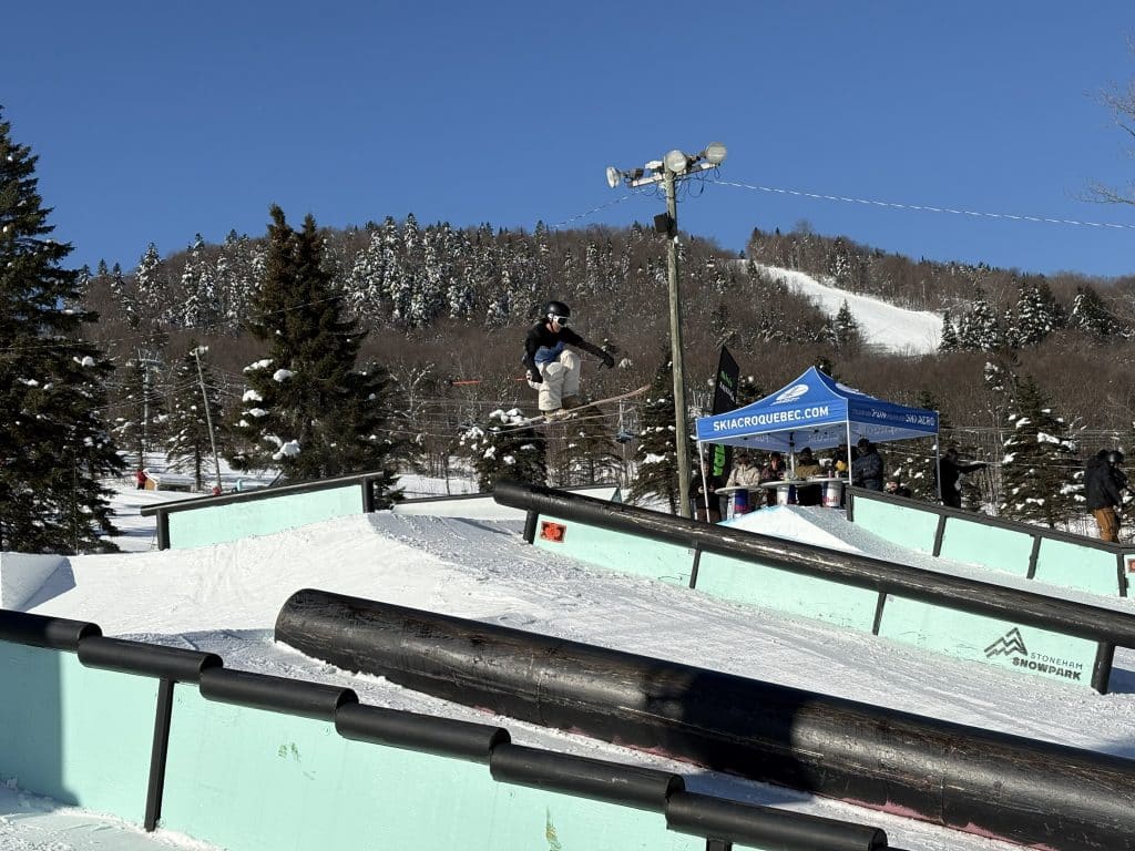 En cette belle journée hivernale avait lieu la toute première édition du rail jam dans un contexte de compétition sanctionné par la Fédération Internationale de Ski (FIS). C’est dans le cadre de la NORAM du Stepup Freeski Tour que cet événement a pris vie.