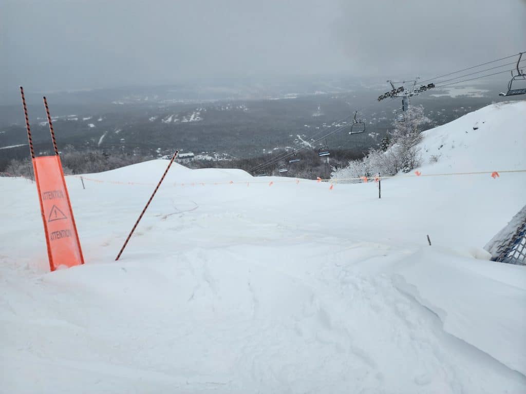 Sur le Sommet du mont Orford, j’ai remarqué que les petites pistes sont fermées. En particulier les pistes à partir de la 4 Km comme la Coutour, la Passe de l’ours, la Porc-epic et la Chevreuil. Selon moi, ces pistes seront bientôt ouvertes car la couverture de neige est très intéressante !