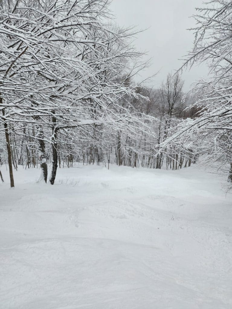 Sur le Mont Alfred-Desrochers, j’ai bien aimé la piste Cascade et le sous-bois Petite ourse. Il y avait encore beaucoup de neige et très peu d’achalandage !