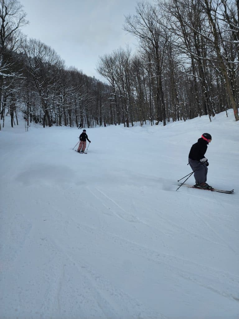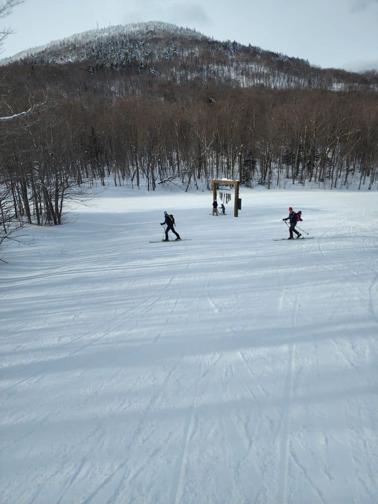 Ensuite, on se dirige vers le sommet du Mont Alfred-Desrochers. Le décor est super intéressant. Les arbres sont rempli de neige et les pistes plus étroites nous permettent de skier et de relaxer.