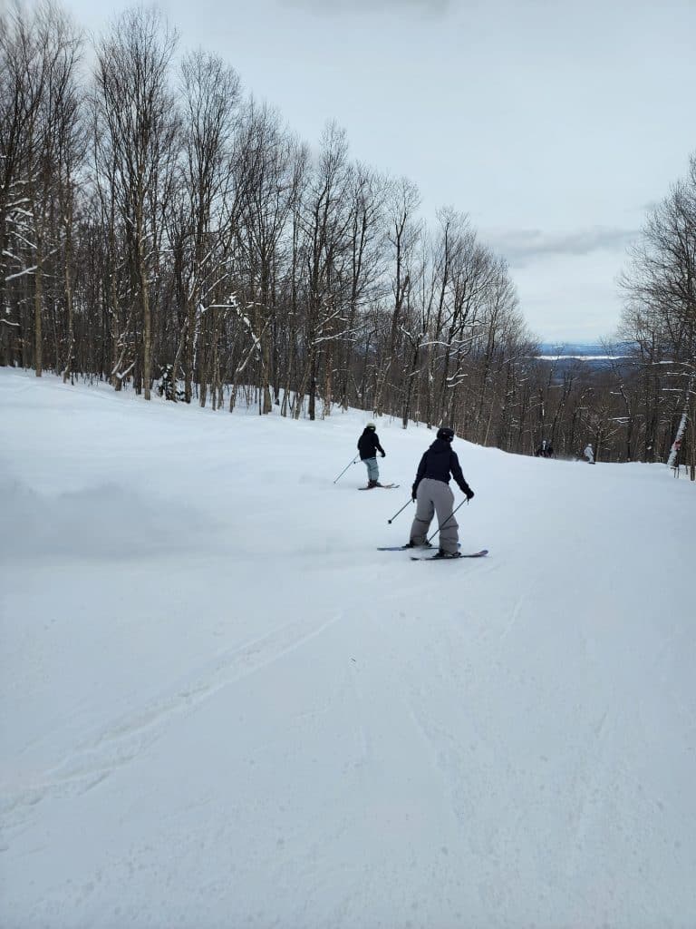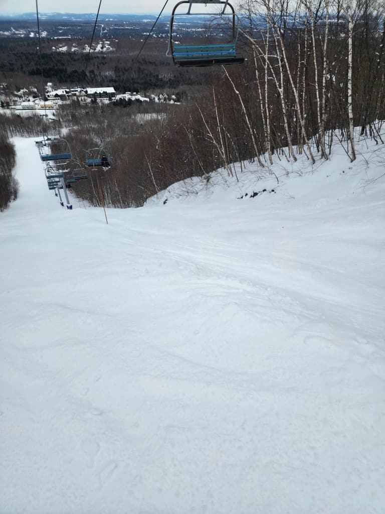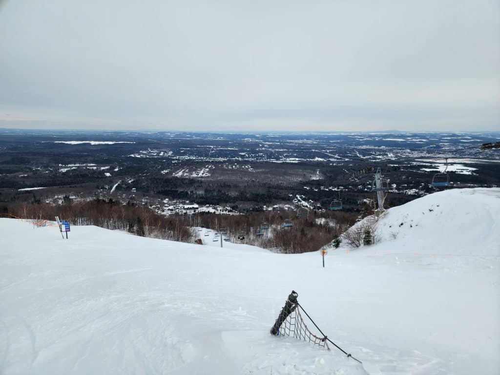 Dès notre arrivée, nous sommes accueillit par Michel au service à la clientèle. On nous avise que le sommet de Orford sera fermé car il y a des travaux de resurfaçage. Par contre, le sommet de Giroux et le sommet de Alfred-Desrochers sont ouverts. Il y a 33 pistes ouvertes pour une proportion de 80 % du domaine skiable.