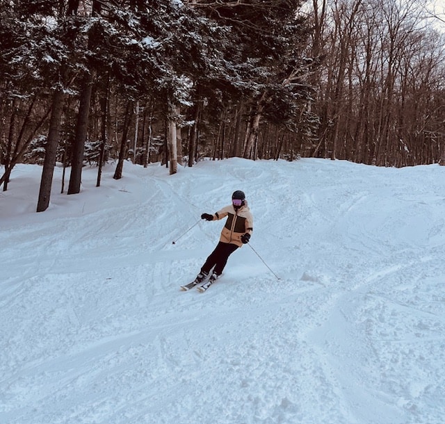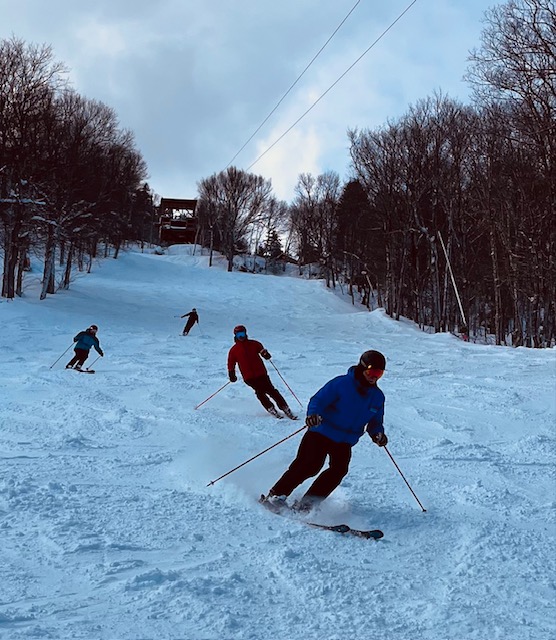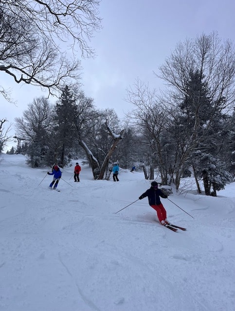 Les dameurs ont fait un excellent travail durant les derniers jours, ce qui est invitant au début du jour de ski avec une belle poudreuse de ce matin. Les traces des skis en descente c’est très joli avec la belle poudreuse qui s’élevait lors des descentes des skieurs et skieuses.