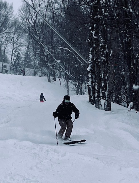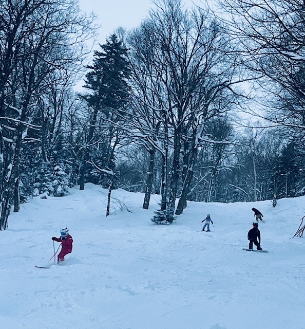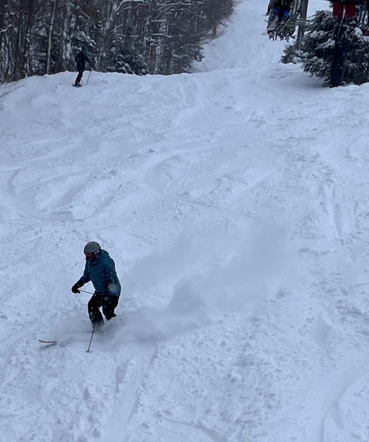 Les conditions sont exceptionnelles au Mont Sutton. Depuis le début de la tempête hier soir, on estime une accumulation de 20 à 25 cm de neige fraîche, portant le total saisonnier à près de 4 mètres. Les chutes de neige se sont poursuivies toute la journée, offrant une poudreuse profonde, légère et constante, idéale pour un ski engagé.