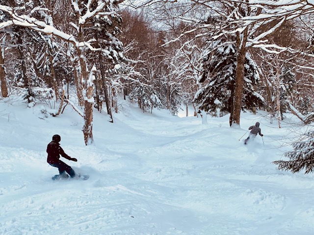 Les sous-bois, généreusement enneigés, sont magnifiques à skier, proposant des lignes naturelles, une excellente flottabilité et un terrain joueur pour les skieurs techniques.
