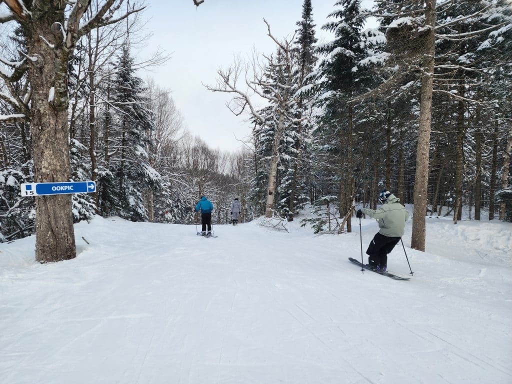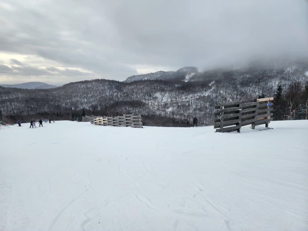Les pistes sur le mont Alfred-Desrochers nous permettent de skier à l’abri du vent dans des pistes relativement étroites. J’ai vraiment aimé skier ce secteur. La neige est belle et nous pouvons trouver de la neige légère et poudreuse.