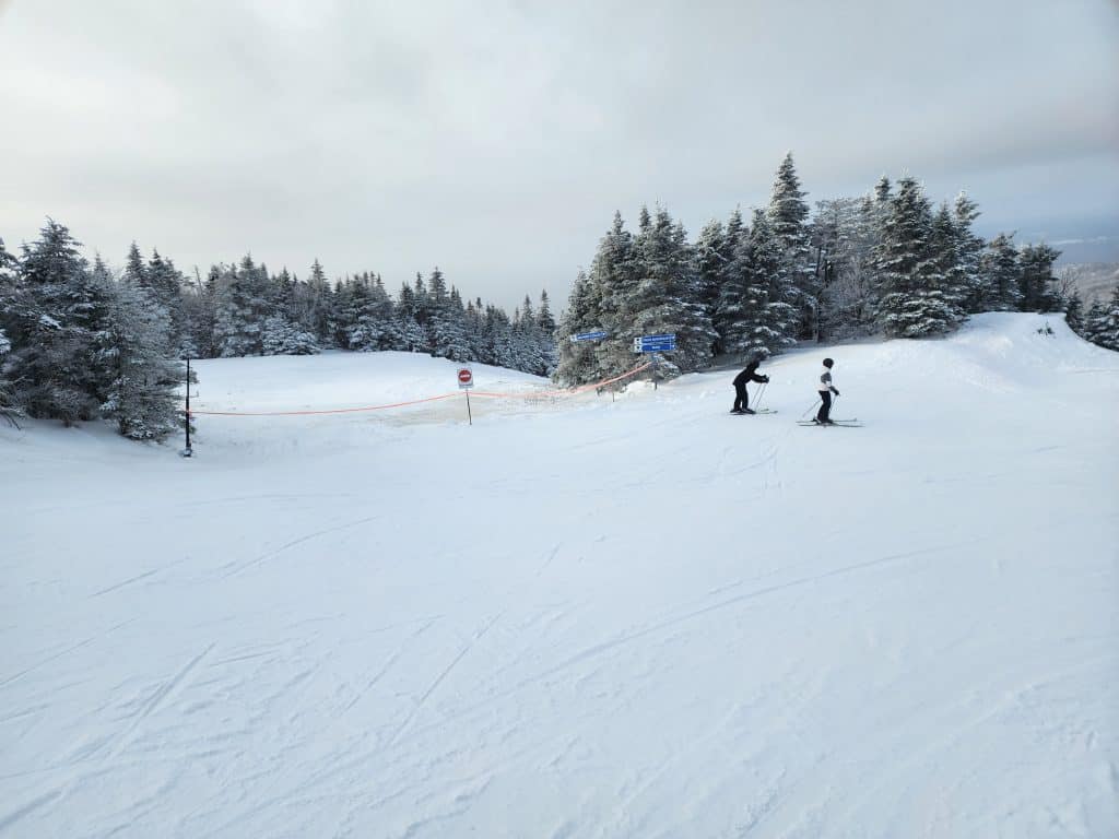 Aujourd’hui, il y a 7 pistes ouvertes sur le Mont Orford et 10 pistes sur le Mont Giroux. En après-midi, j’ai remarqué que le remonte-pente sur le Mont Alfred-Desrochers était en opération. Ce qui nous permettait d’accéder à 2 autres pistes soit la Ookpic et la Grande-Allée.
