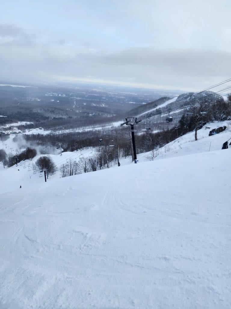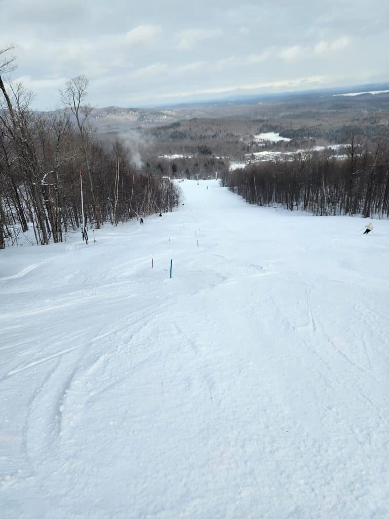 Sur le Mont Giroux, nous avons accès à plusieurs pistes de niveau débutant très bien travaillées mécaniquement. Nous pouvons aussi augmenter la vitesse dans des pistes de niveau difficile (Magog et la Jean-Davignon). J’apprécie avoir des skis fraichement aiguisés qui me permettent de passer les sections de neige un peu plus dure !