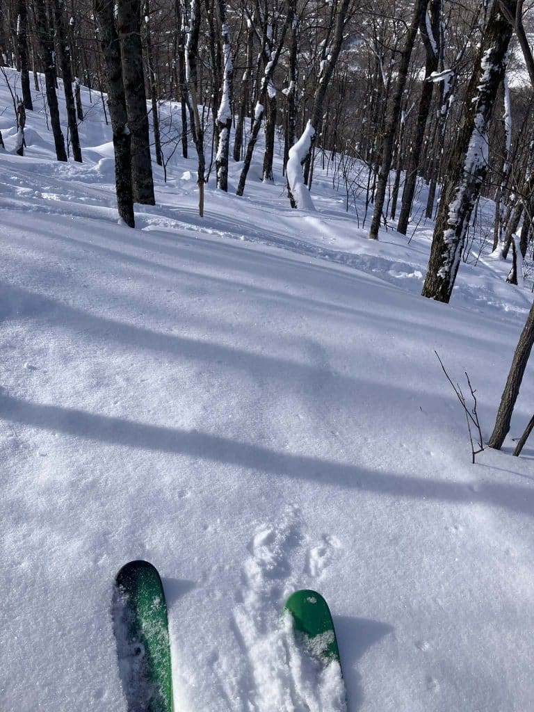 Dès ma première descente et à ma grande satisfaction, j’avais une belle ligne de neige fraîche qui m’attendait, ce qui est fréquent à cette montagne.