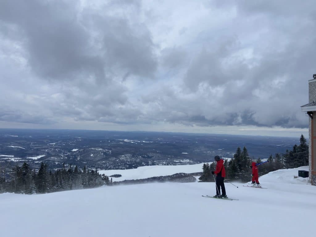 Arrivés à Tremblant, nous avions maintenant une petite bruine qui semblait annoncer de la pluie plus soutenue, avec les gros nuages noirs au ciel, mais il n’en fut rien. Plus de peur que de mal.