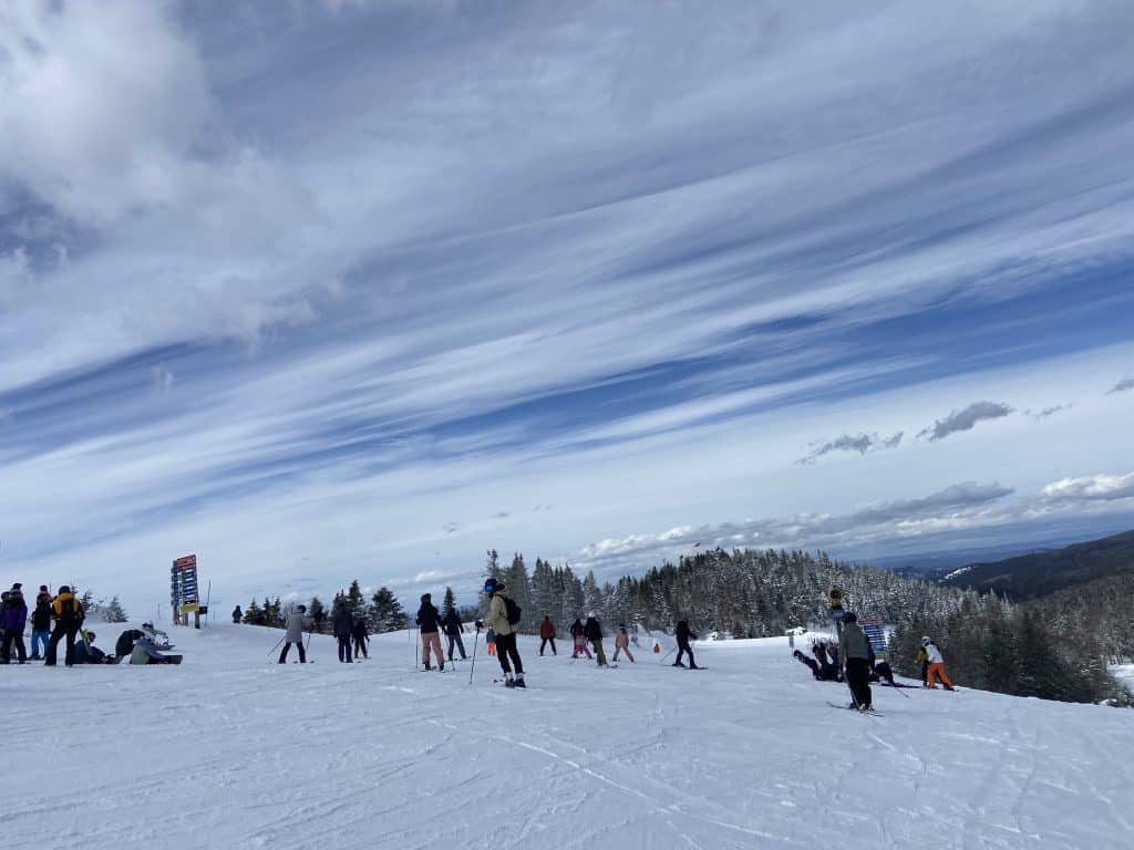 Petite surprise en arrivant au Versant Nord : le télésiège Duncan Express n’est pas en opération ! Mais que s’est-il passé? Le télésiège était défectueux au cours du dernier week-end mais nous avions compris des médias sociaux que les réparations seraient effectuées au cours de la semaine dernière. Eh bien ce ne fut vraisemblablement pas le cas, et il fallait monter en deux étapes pour se rendre au sommet, comme dans ma jeunesse. Et ce, toute la journée.