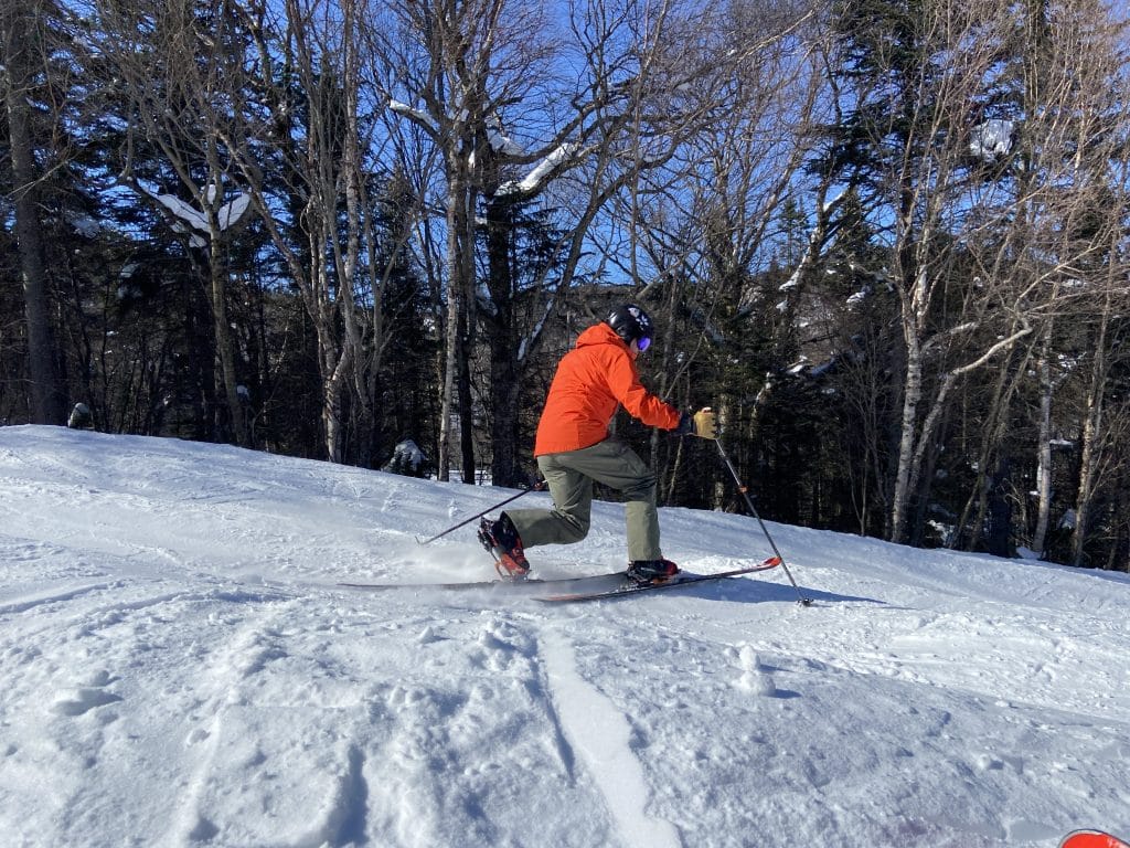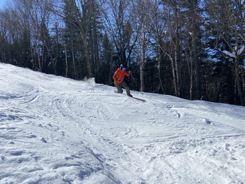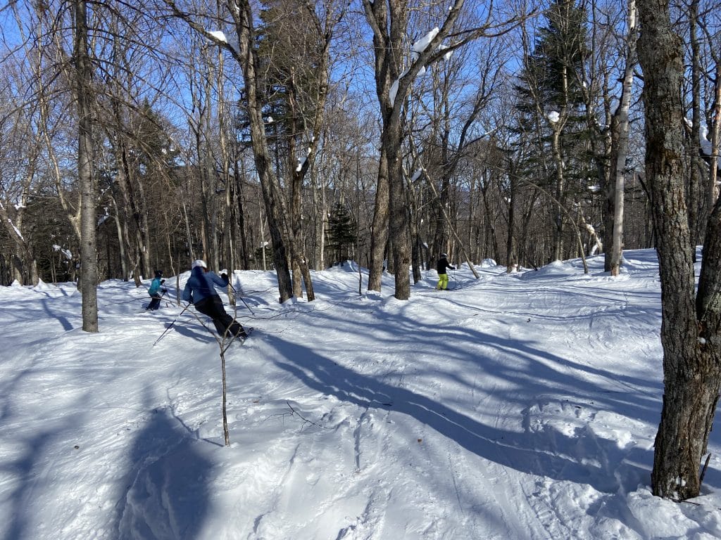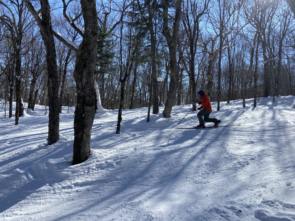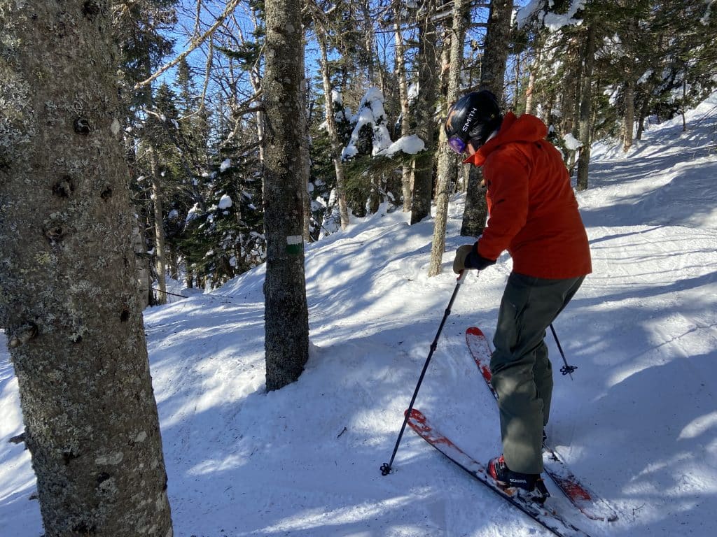 Par la suite c’est vers le Versant Edge que nous sommes allés faire un des beaux sous-bois de la station. La température se réchauffant, ça commence déjà à être un peu ramolli pour nous permettre une meilleure prise. C’est très agréable comme toujours. Retenez que les sous-bois de Tremblant sont toujours excitants et qu’ils sont présentement tous ouverts. Avec 101 pistes ouvertes sur 102 (nous n’avons pas trouvée la récalcitrante…) vous pourrez tous les visiter. Le fond est abondant et les températures vont commencer à être de plus en plus clémentes; le meilleur s’en vient.