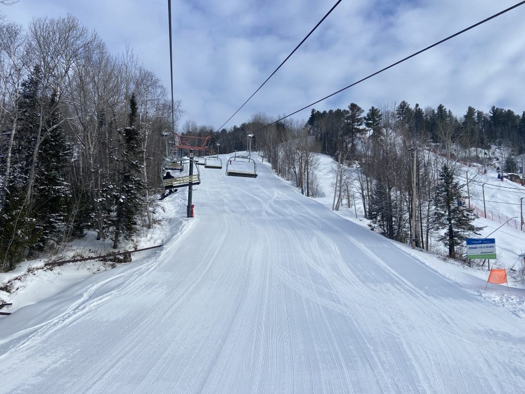 Il règne une atmosphère festive et entraînante sur une montagne accueillante qui nous offre des conditions encore no 1. Les sous-bois sont malheureusement toujours fermés depuis le grand verglas de la semaine dernière mais ça va finir par ramollir. Les Épinettes était ouverte mais c’était à ma connaissance la seule. En revanche, les autres pistes étaient d’un Corduroy impeccable ce matin. Les conditions sont restées plutôt hivernales jusqu’en début d’après-midi alors que nous avons senti une petite transformation de la neige. Une légère transformation, vraiment pas du gros sel, mais qui donne un avant-goût de ce que le printemps nous réserve pour les prochaines semaines. Honnêtement, nous devrions avoir une excellente fin de saison si tout suit son cours tranquillement. Croisez les doigts pour qu’on ne reçoive pas de déluge…