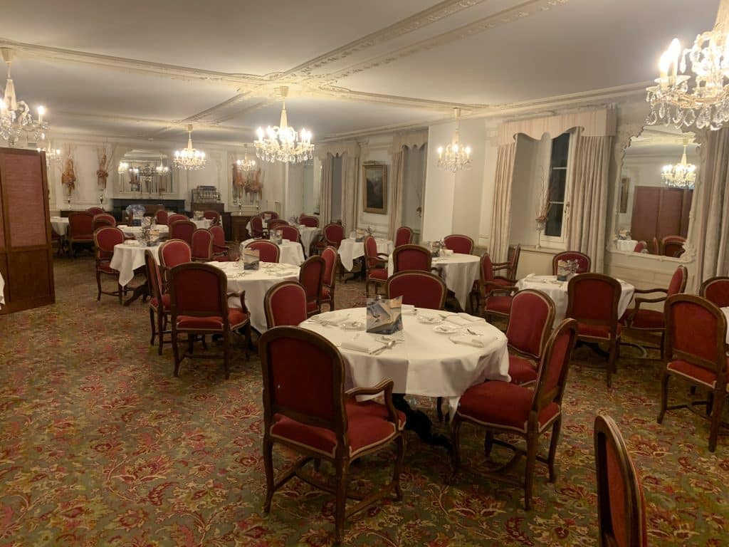 Pour terminer cette journée encore inoubliable, c’est au plus vieil hôtel de Zermatt, le premier de tous, que nous avons pris le repas du soir. Chez Edward’s, dans une atmosphère classique qui nous rappelle l’origine de l’endroit. On y trouve toujours une salle de bal Belle Époque que le maître d’hôtel nous a gentiment fait visiter. Edward Whymper, c’est le premier alpiniste à avoir vaincu le Mont Cervin. Nous sommes au cœur de l’histoire de Zermatt, rien de moins.