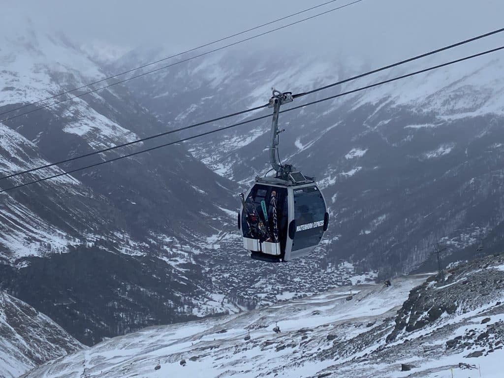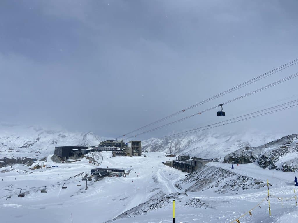 Alors dès 9:00 nous amorçons l’ascension pour une troisième journée consécutive. Cette fois-ci c’est bon, on nous laisse monter et passer Furi, puis Aroleid, puis Schwarzsee, et Furgg jusqu’à Trockener Steg à 2 939 mètres. Il ne reste que le dernier droit à bord de la télécabine dernier cri… Mais ce ne sera pas possible encore aujourd’hui.